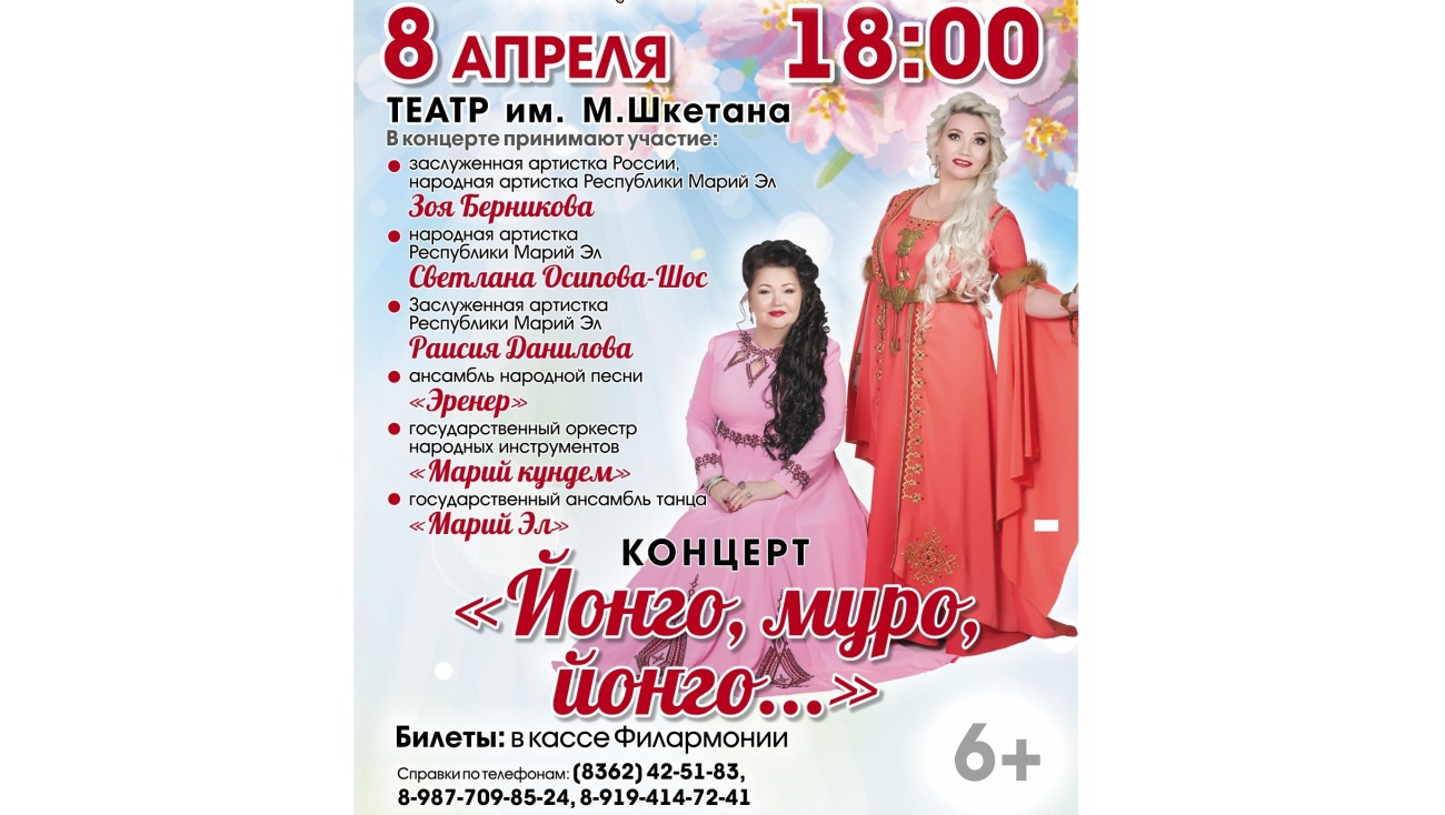 В рамках Фестиваля искусств «Йошкар-Ола весенняя −2021» в Марийском национальном театре драмы им. М. Шкетана пройдёт концерт «Йоҥго, муро, йоҥго» («Звучи, песня, звучи»).