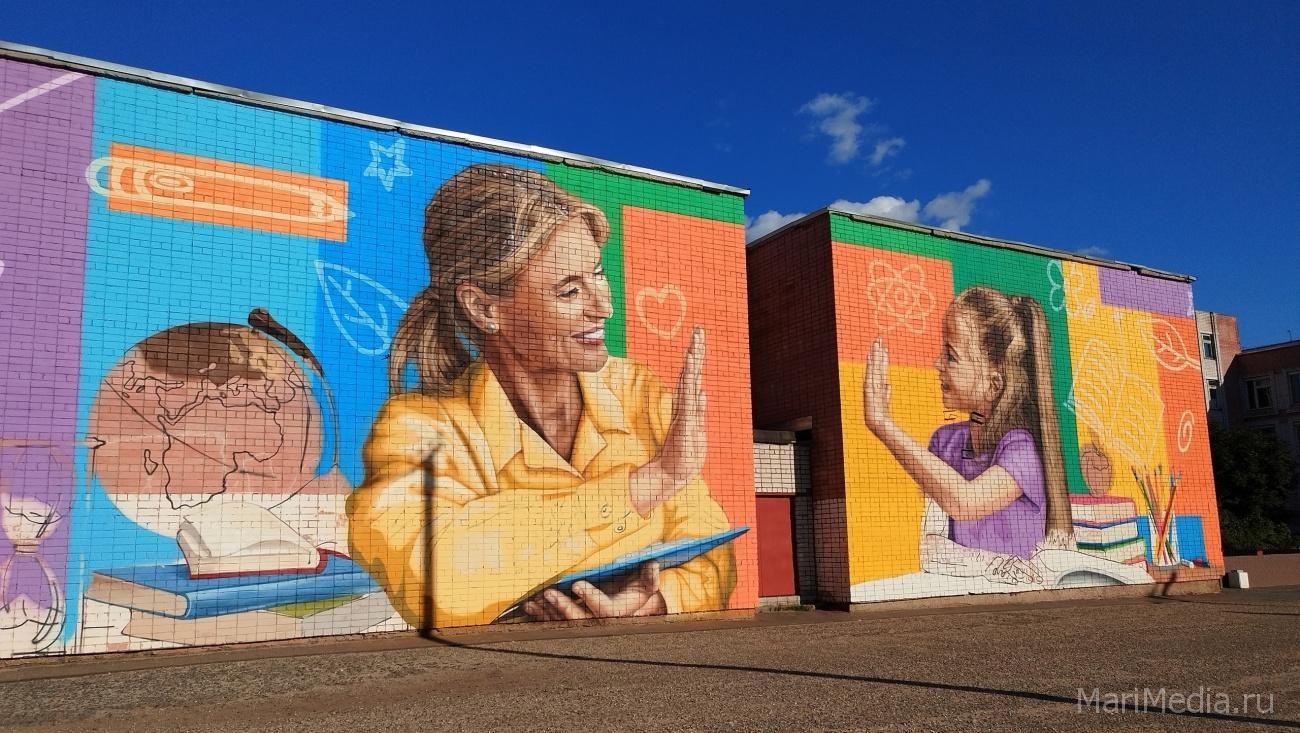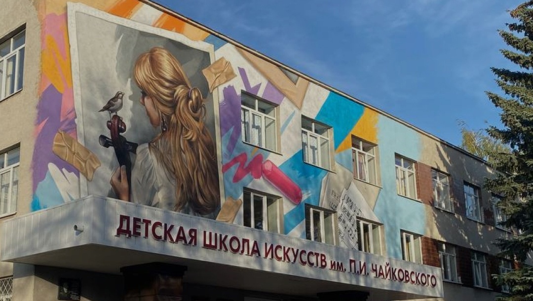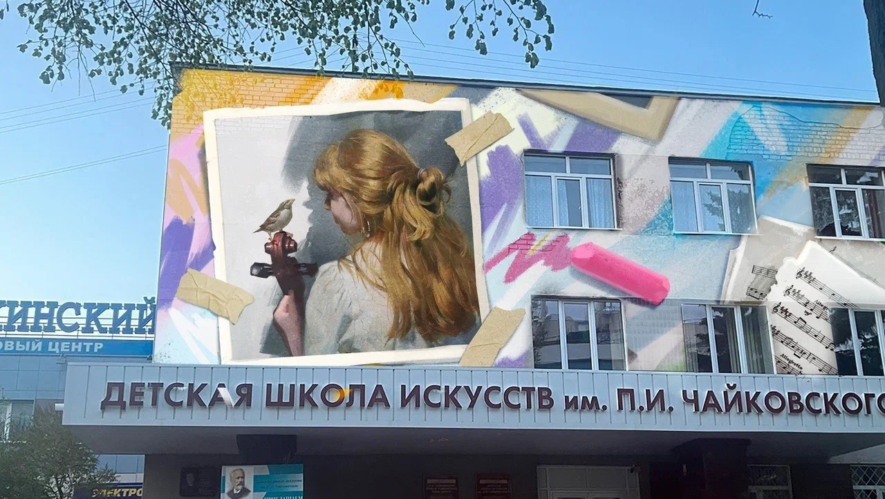 Здание Детской школы искусств в Йошкар-Оле украсил граффити-рисунок «Воспоминание»