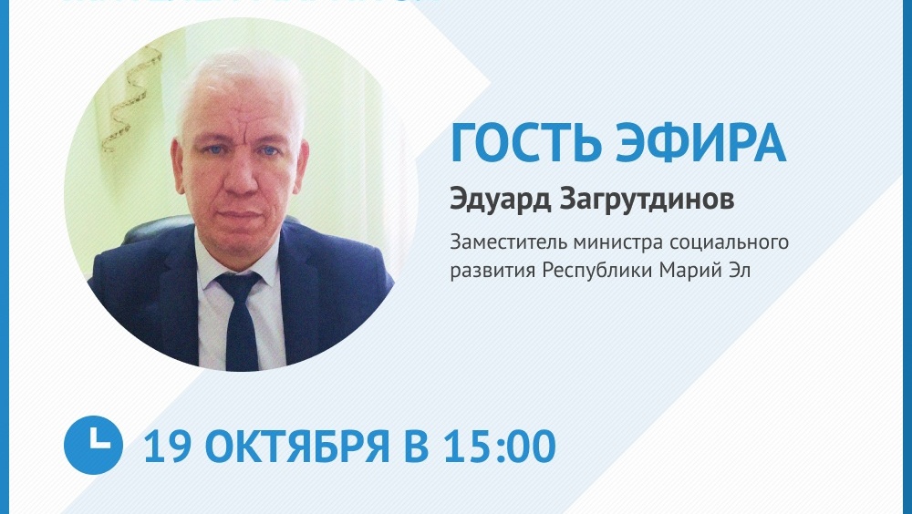 В среду, 19 октября, в 15:00 в прямом эфире ЦУР заместитель министра социального развития Республики Марий Эл Эдуард Загрутдинов.