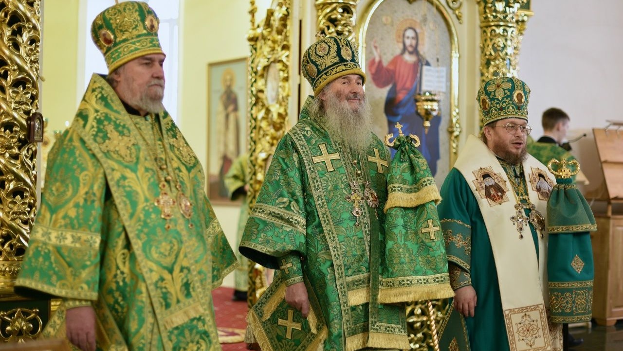 Божественную литургию в Троицком соборе возглавили архиереи Вятской и Марийской митрополий: митрополит Вятский и Слободской Марк, митрополит Йошкар-Олинский и Марийский Иоанн, епископ Яранский и Лузский...