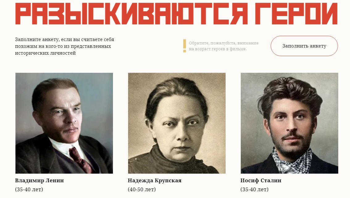 Команда известного российского режиссёра Андрея Кончаловского отправилась в регионы страны на поиски людей-двойников — Николая Второго, Распутина, Корнилова, Ленина и других персонажей нового многосерийного сериала про Октябрьскую революцию, посвящённого событиям начала XX века, изменившим Россию и мир. Именно поэтому продюсерский центр Кончаловского решил устроить народный кастинг, сообщает