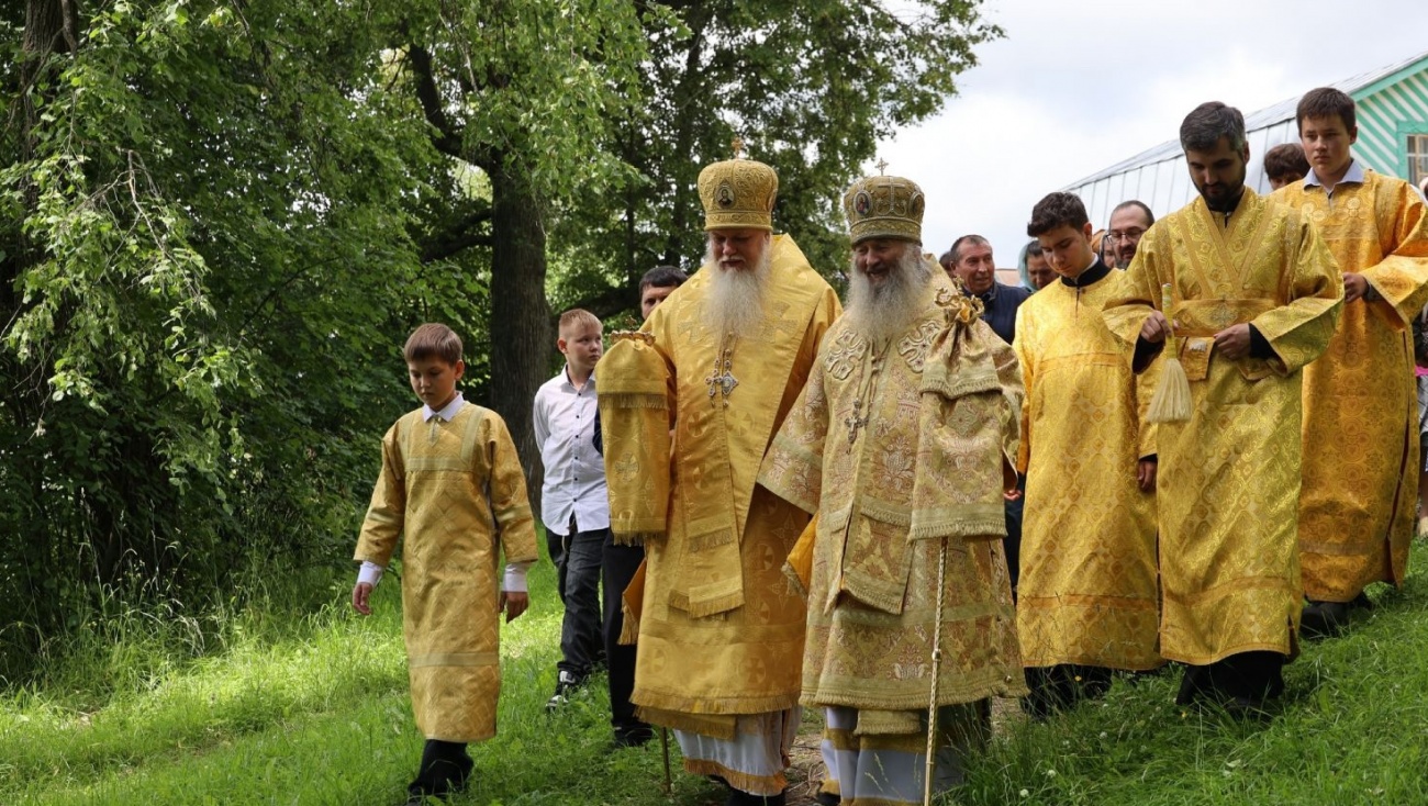 После литургии православные прошли крестным ходом до источника, освящённого в честь Смоленской иконы Богородицы, где был отслужен водосвятный молебен.