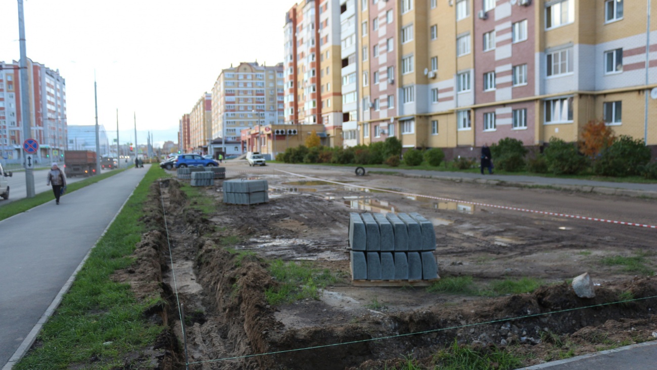 В настоящее время подрядчик готовит площадки под асфальтирование подъездной территории около магазина «Пятерочка» по адресу б. Ураева, 10.