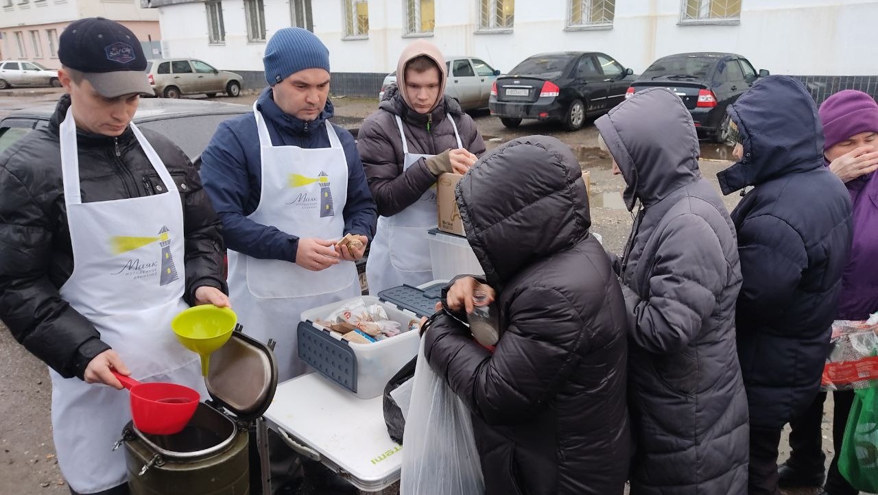 Добровольческое сообщество "Маяк" открыло в Йошкар-Оле третью точку бесплатного горячего питания для бездомных.