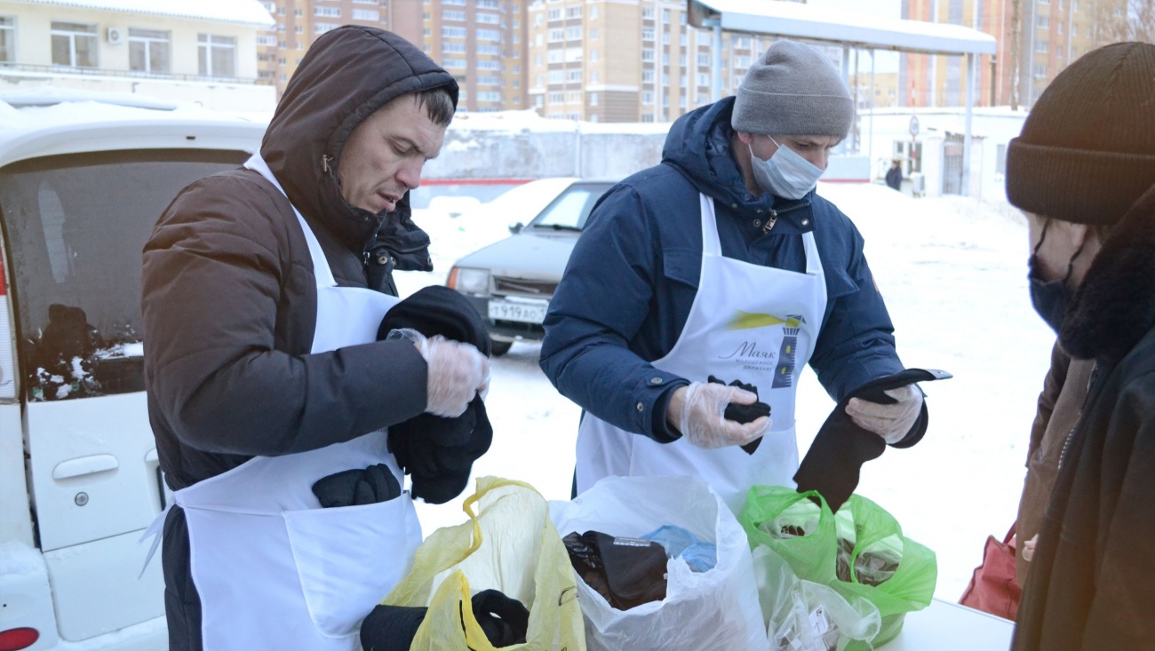 По наблюдениям волонтёров, многие нуждающиеся приходят к ним на точки раздачи пищи в обуви, которую получили от «Маяка» в прошлом...