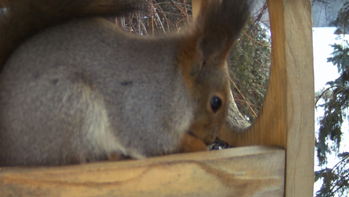 ... рассмотреть пушистых обитателей со всех ракурсов. Ранее сообщалось, что их кормушку для птиц этой зимой облюбовали незванные гости — белки. Просматривая в очередной раз видео фотоловушки они обнаружили, что самая крупная белка, которая уже с трудом помещается в домик — ...