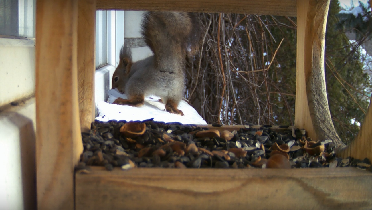 В Ботаническом саду Йошкар-Олы белки атаковали птичью кормушку