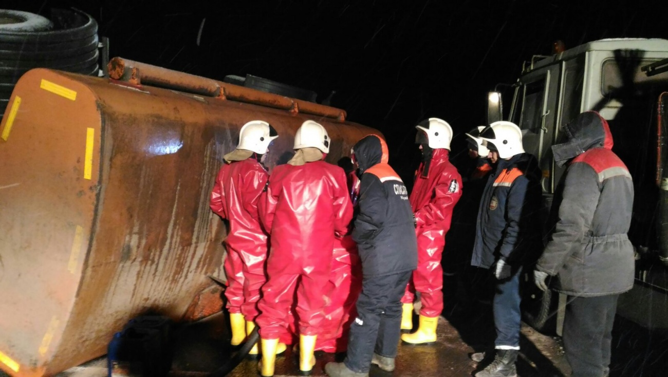 ... аварийно-спасательной службы поступил сигнал о том, что в Советском районе на 30-м километре автодороги «Йошкар-Ола — Уржум» перевернулся прицеп бензовоза. Произошла утечка дизтоплива. Водитель «КАМАЗа», йошкаролинец 1961 года рождения, не пострадал.