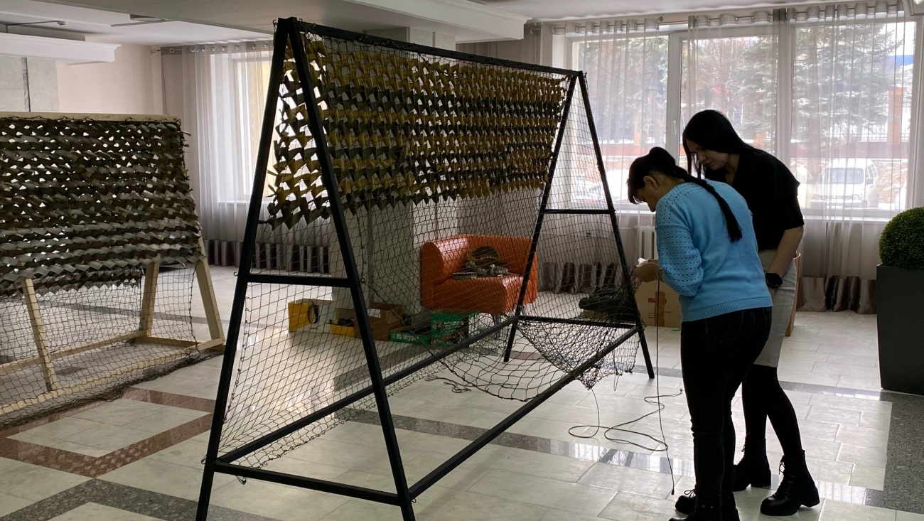 Напомним, в холле администрации стоят рамки, и все желающие могут прийти и внести свою лепту в подготовку маскировочных приспособлений для бойцов СВО.