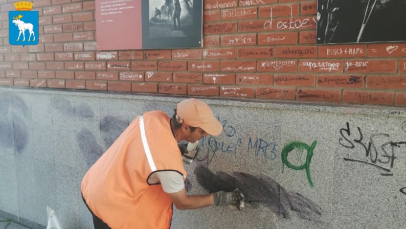 Набережную Йошкар-Олы очищают от художеств вандалов