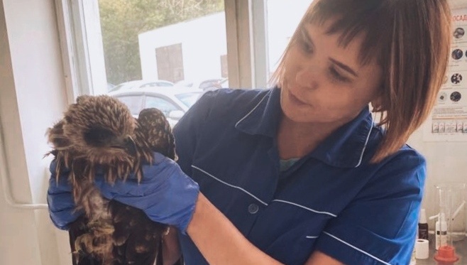 Пациентом Волжской станции по борьбе с болезнями животных стал птенец хищной птицы. Как предположили ветеринары, это птенец ястреба.