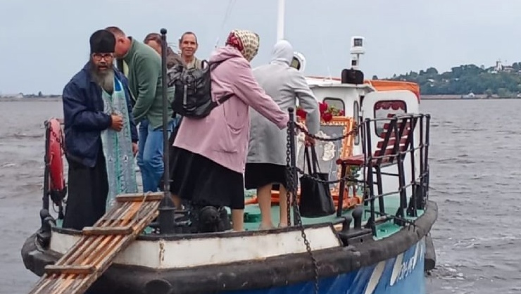 Наутро после литургии икону переправили на катере через Волгу в село Покровское. На берегу её встречали настоятель Покровского храма иерей Сергий Иванов с прихожанами.