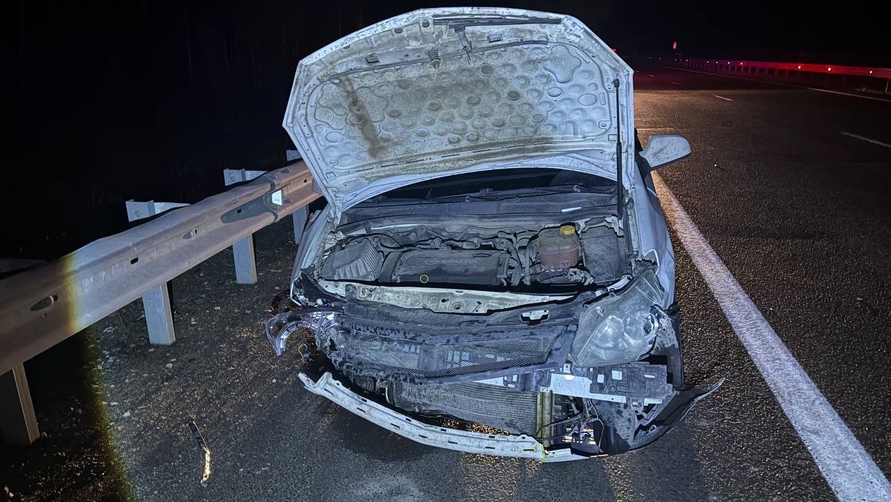 24-летняя девушка, имеющая стаж управления транспортным средством менее года, на автомашине Fiat на мокром участке дороги не справилась с управлением и врезалась в металлический отбойник на встречке.