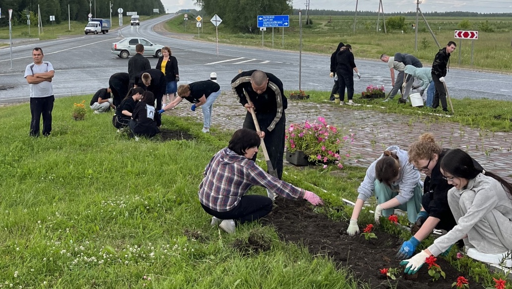 Участники акции высадили цветы около памятника Акпарсу, который установлен на Картуковском повороте. Жителей и гостей на въезде в район теперь встречает облагороженная молодёжью территория.