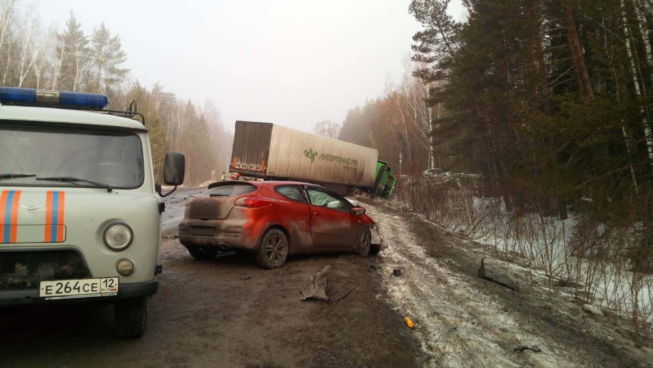 Сегодня утром на трассе Йошкар-Ола-Казань произошло смертельное ДТП. В 7:27 на пульт оперативного дежурного Марийской аварийно-спасательной службы поступил сигнал о столкновении легкового автомобиля «Киа» и фуры «Мерседес». Авария произошла на территории Звениговского района на 65 км автодороги Йошкар-Ола — Казань.