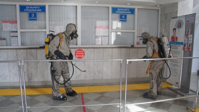 Специальными средствами были обработаны здания, служебные помещения, зал ожидания и пассажирские платформы вокзала.