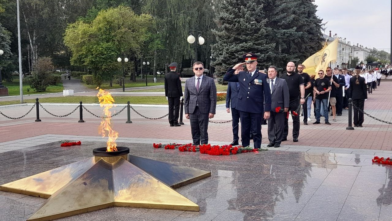 Собравшиеся почтили память погибших минутой молчания и возложили цветы к Монументу воинской славы и Вечному огню.