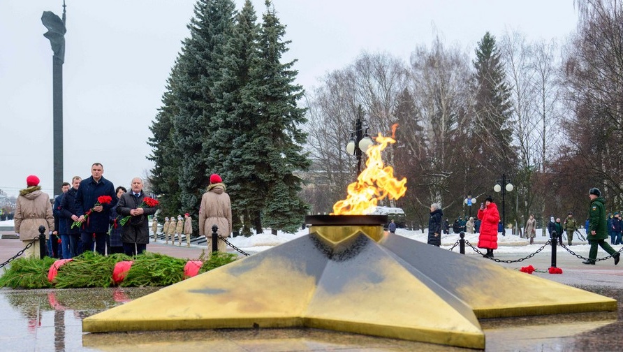 Власти города вместе с представителями патриотических объединений и общественности возложили цветы к Мемориалу Воинской славы и Вечному огню.
