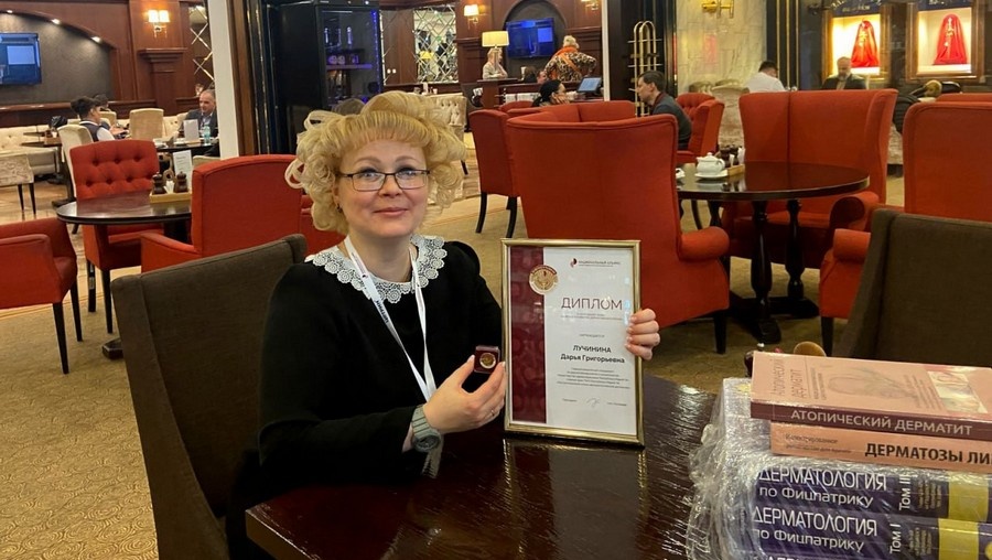 Дарье Григорьевне вручили диплом и нагрудный знак «За вклад в развитие дерматовенерологии».