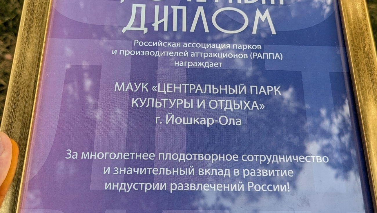 Парк культуры и отдыха Йошкар-Олы отметили за значимый вклад в развитие индустрии развлечений страны.