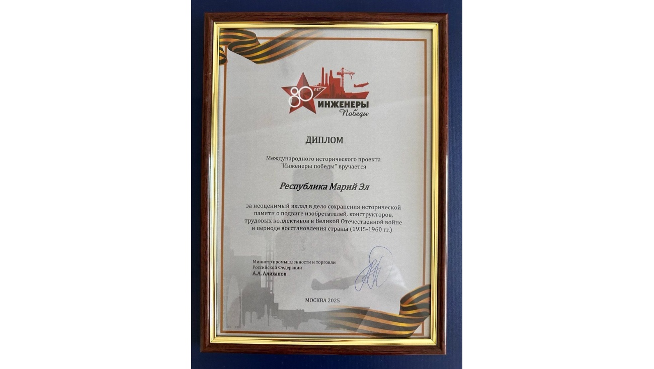 Республика Марий Эл удостоена диплома Международного проекта «Инженеры Победы».