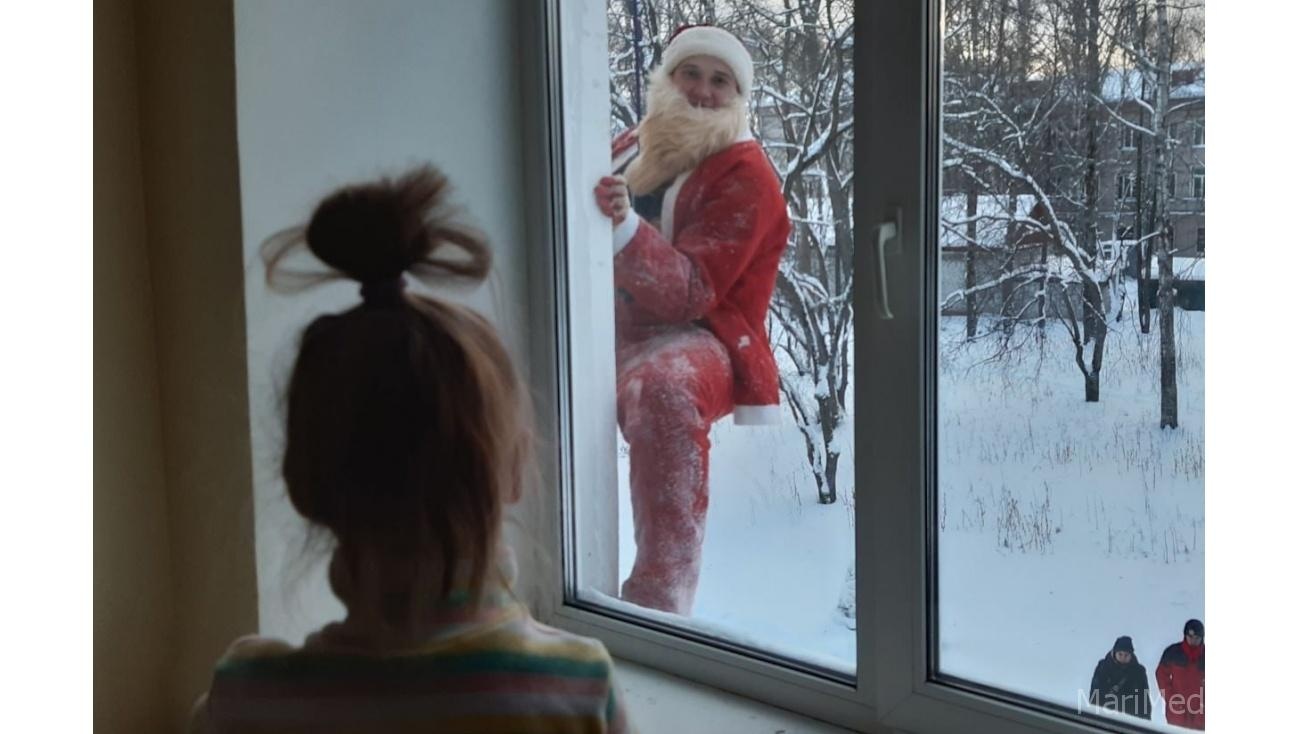 Маленькие пациенты детских больниц в Йошкар-Оле накануне наблюдали настоящее новогоднее чудо. К ним в окна постучался Дед Мороз.