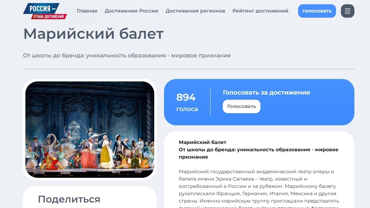 На платформе «Достижения.рф» добавился балет Марий Эл