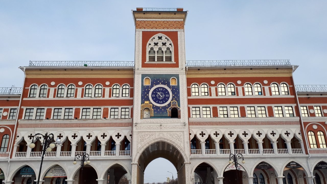... являются часы — уменьшенная копия московских курантов. Это четыре циферблата по 3,5 метра в диаметре каждый.