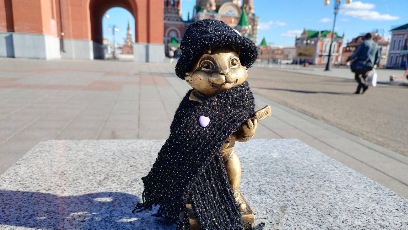 Жители Йошкар-Олы утепляют бронзовую котосемью