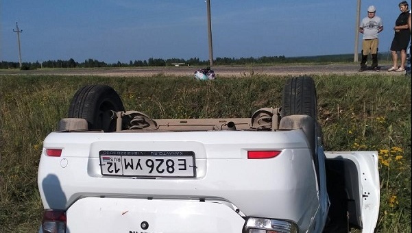 На 8 км объездной дороги посёлка Новый Торъял иномарка перевернулась в кювет.