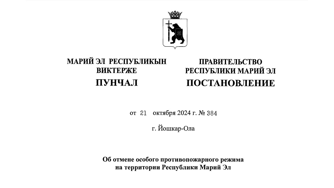 И. о. председателя правительства Республики Марий Эл Евгений Курмаев подписал постановление «Об отмене особого противопожарного ...