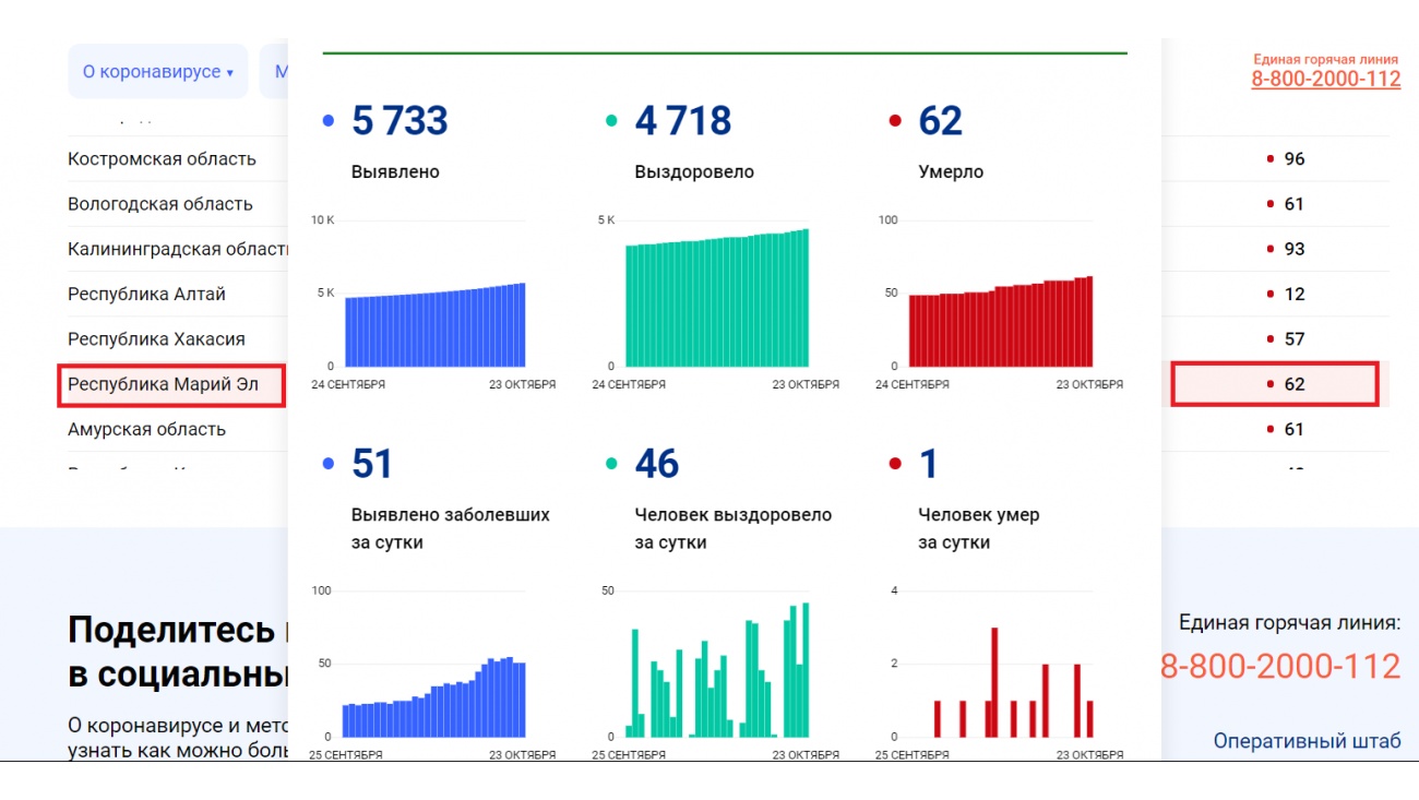 В Марий Эл по статистике от COVID-19 погибло 62 человека