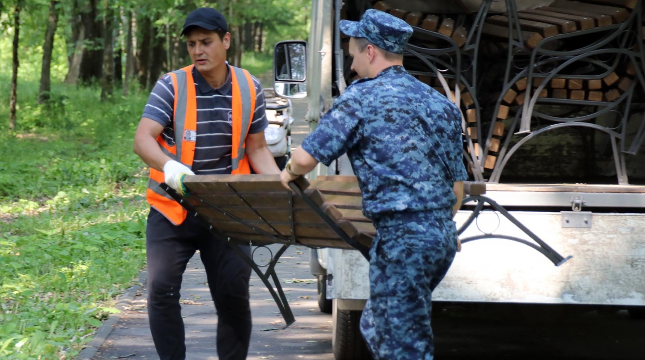 На аллее Победы в посёлке Медведево силами осуждённых установили новые скамейки и урны