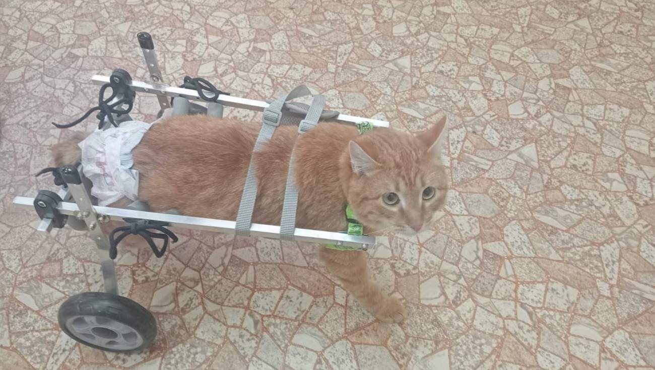 Жители посёлка Советский приобрели для кота Рыжика инвалидную коляску.