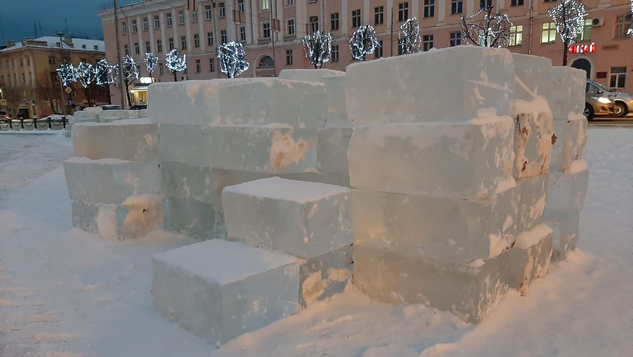 На площадь им. В.И. Ленина завезли ледяные блоки для изготовления фигур