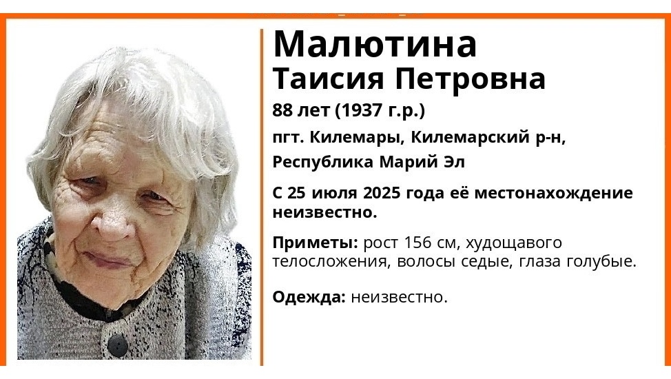 Информацию, которая поможет в поисках, можно сообщить по тел. 112, сообщает поисковый отряд «ЛизаАлерт» Марий Эл.