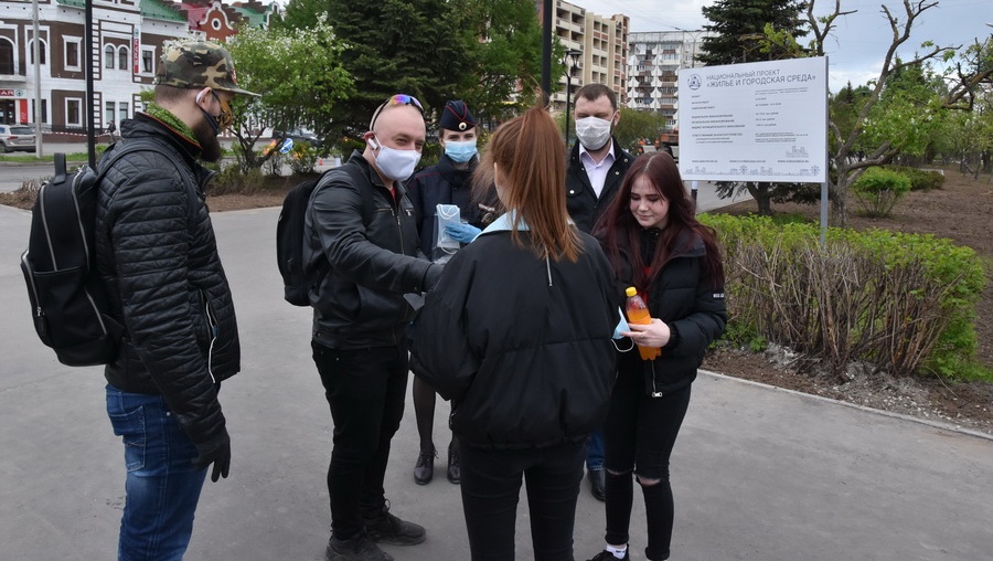 Полицейские и общественники раздают маски жителям Йошкар-Олы
