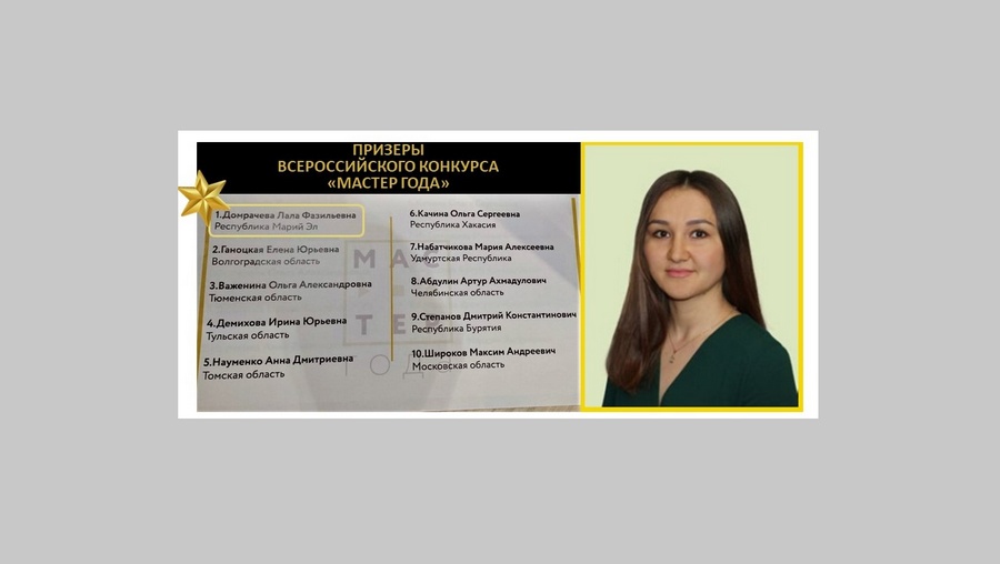 Преподаватель из Марий Эл вошла в десятку призёров Всероссийского конкурса «Мастер года»