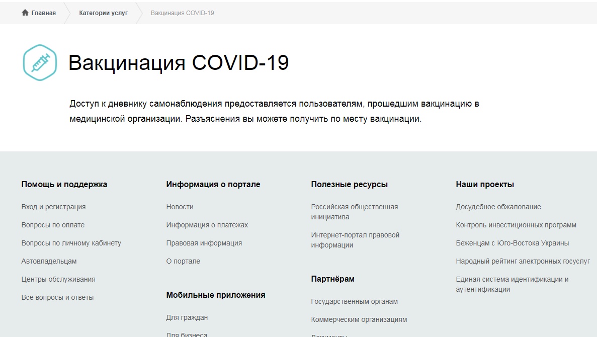 На Госуслугах появился дневник самонаблюдения для людей, сделавших прививку от ковид