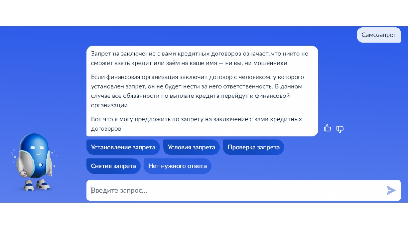 Слово «самозапрет» возглавило топ запросов Роботу Максу на Госуслугах.