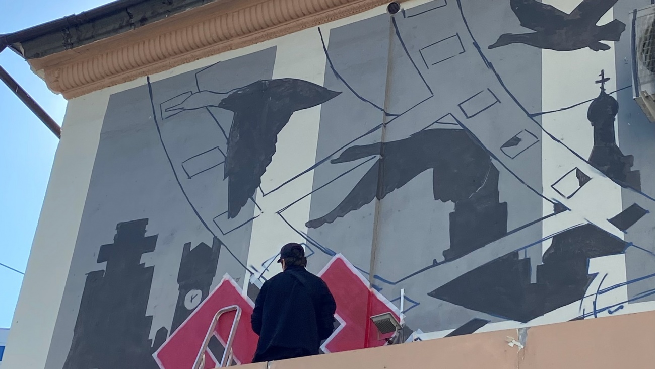 Идею и проект нового граффити на стене кинотеатра поддержала администрация города. Автор эскиза — художник Никита Решта.
