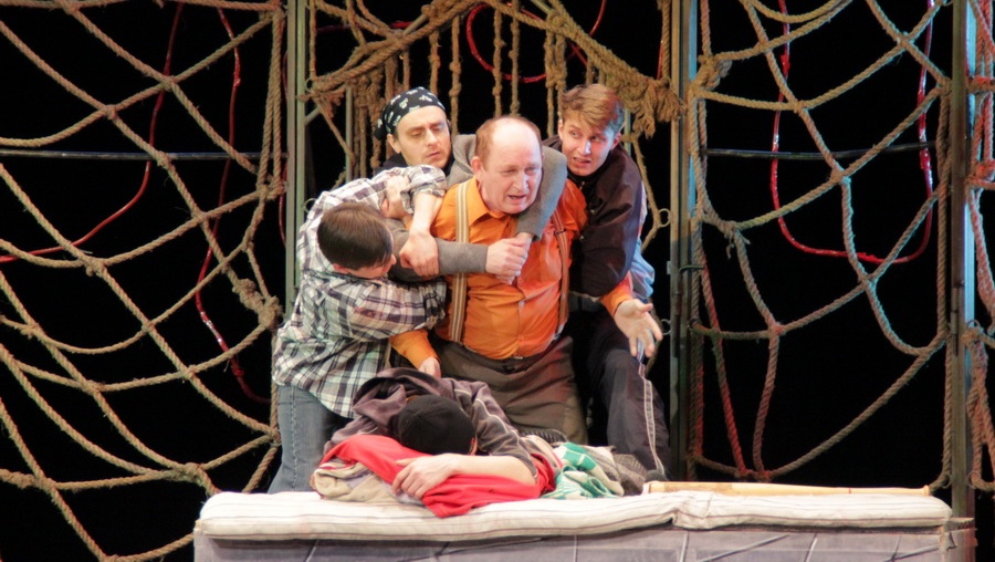 Жанр спектакля обозначен как «хохмедия в двух...
