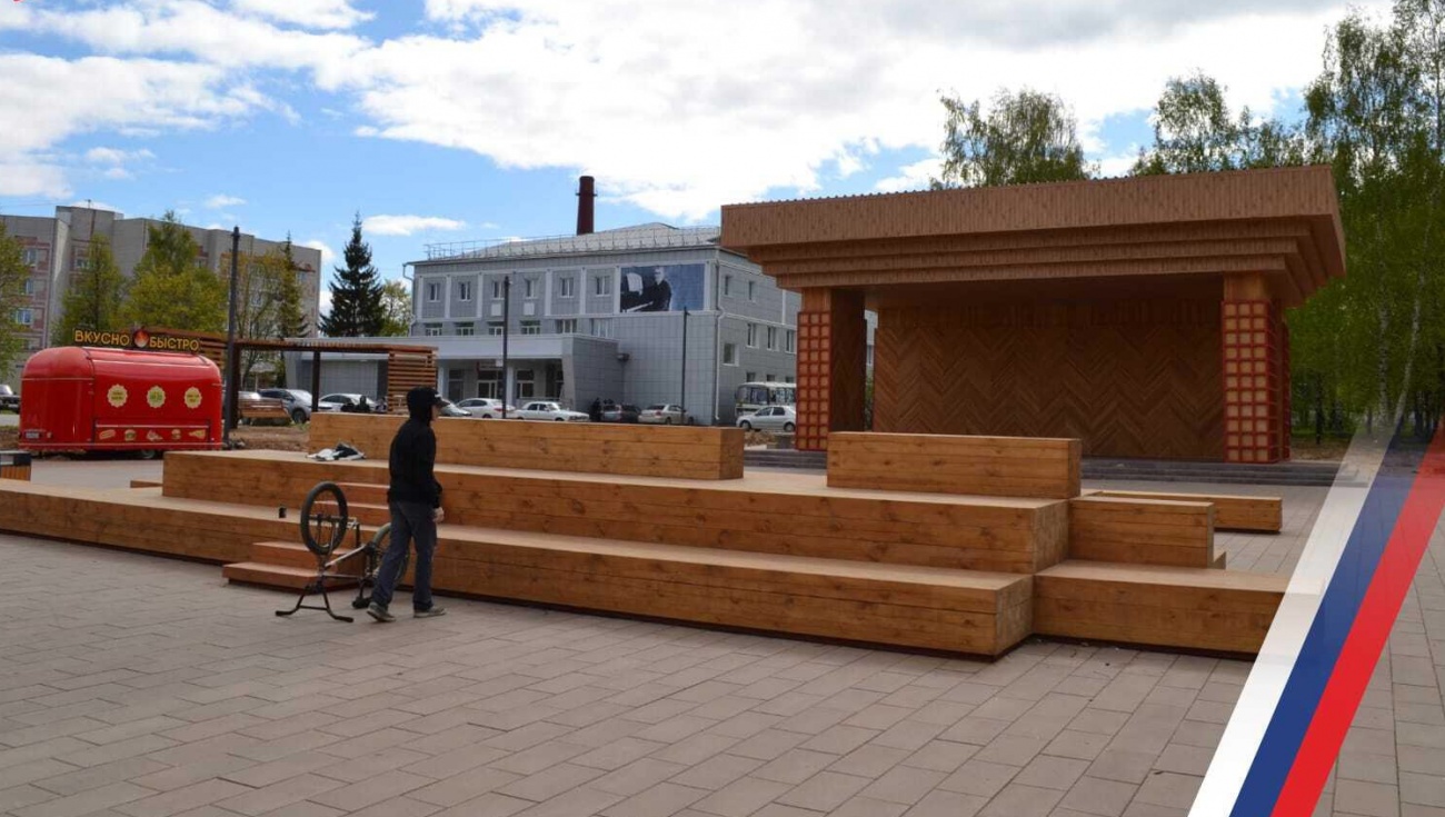 На территории обустроили тротуарные дорожки, оборудовали сцену для проведения мероприятий...