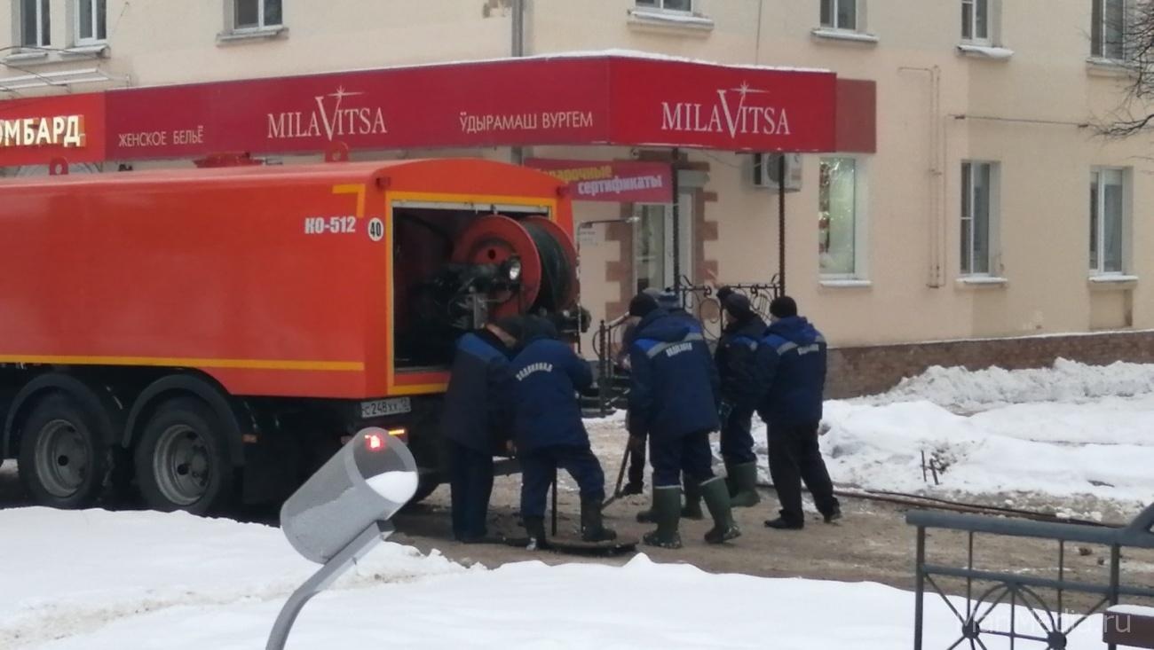 Около кафе «Пингвин» сотрудники «Водоканала» ведут работы в колодце на проезжей части.