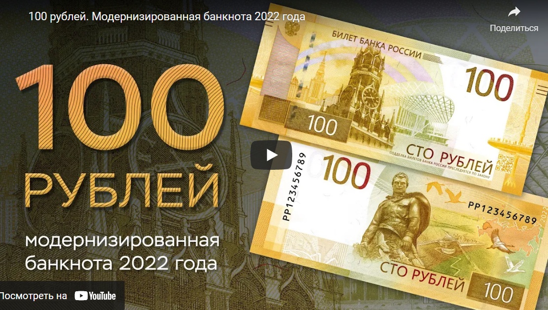 30 июня 2022 года ЦБ РФ вводит в обращение модернизированную банкноту номиналом 100 рублей выпуска 2022 года.