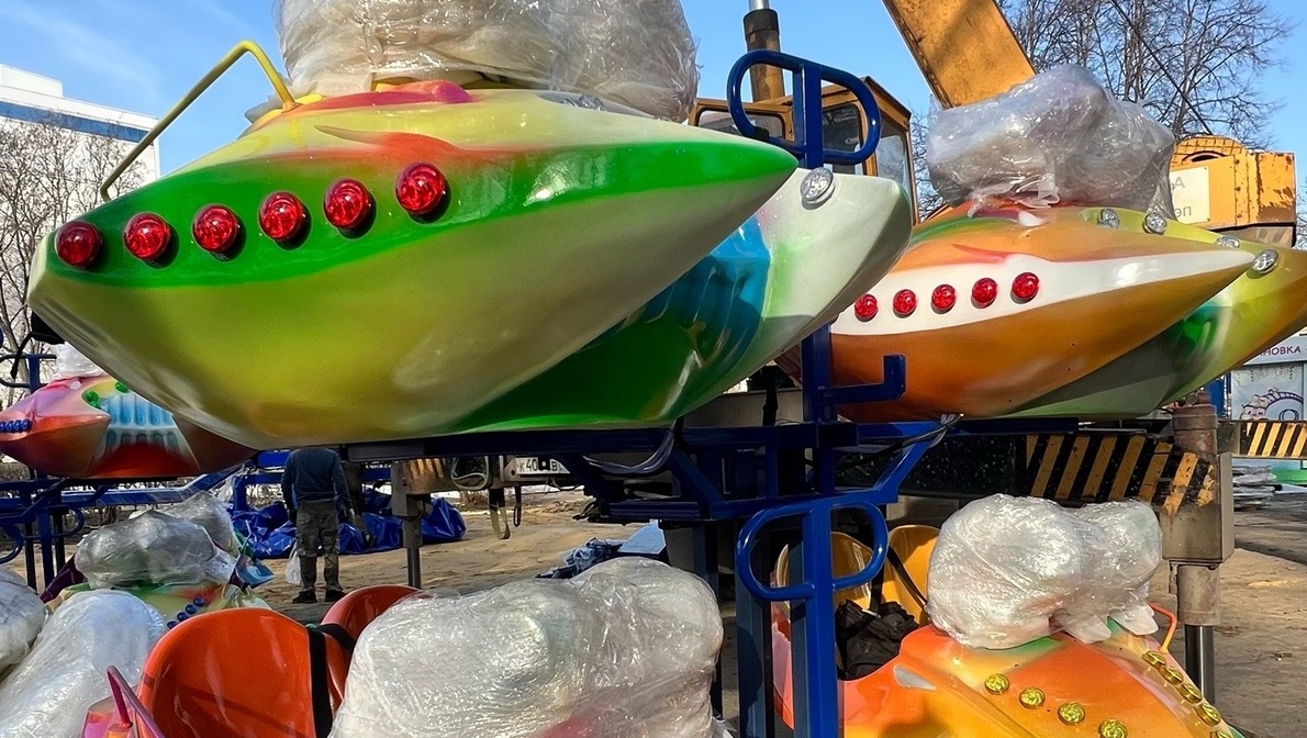 Его привезли вчера. Сейчас его устанавливают на территории. Карусель располагается возле «НЛО», «Автодрома» и «Сюрприза».