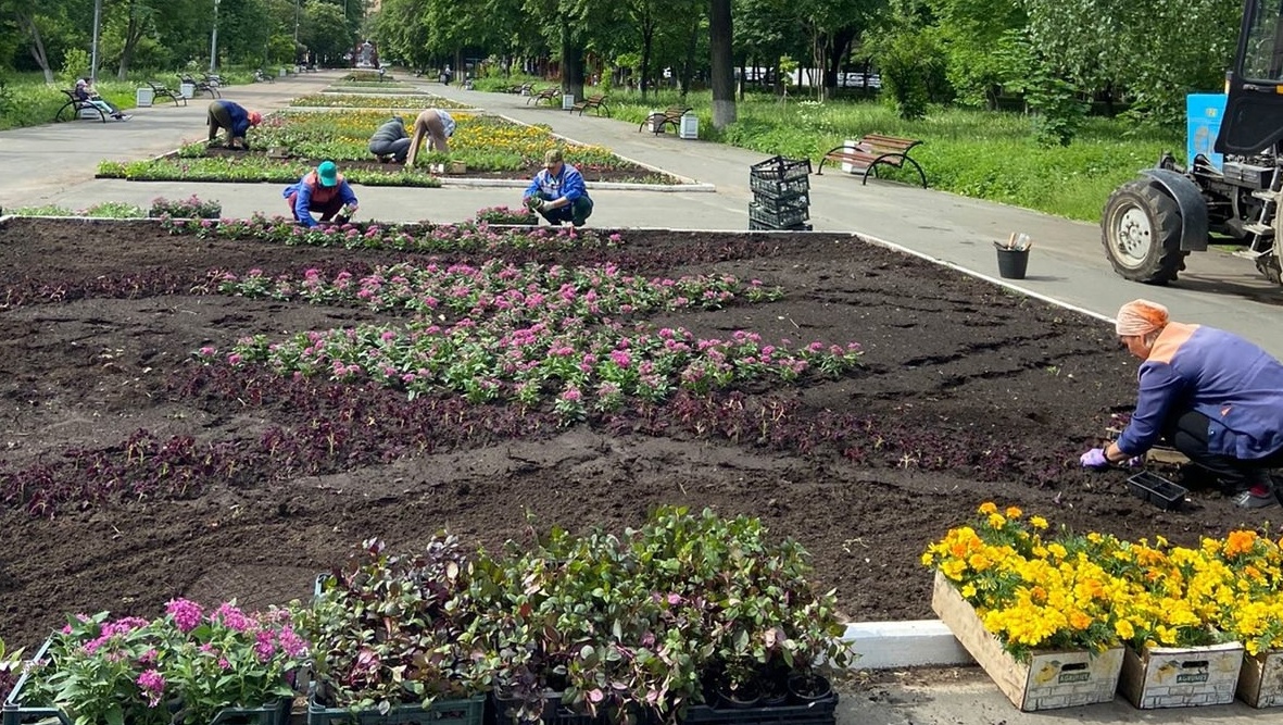 Озеленители активно трудятся над высадкой цветов в городские клумбы....