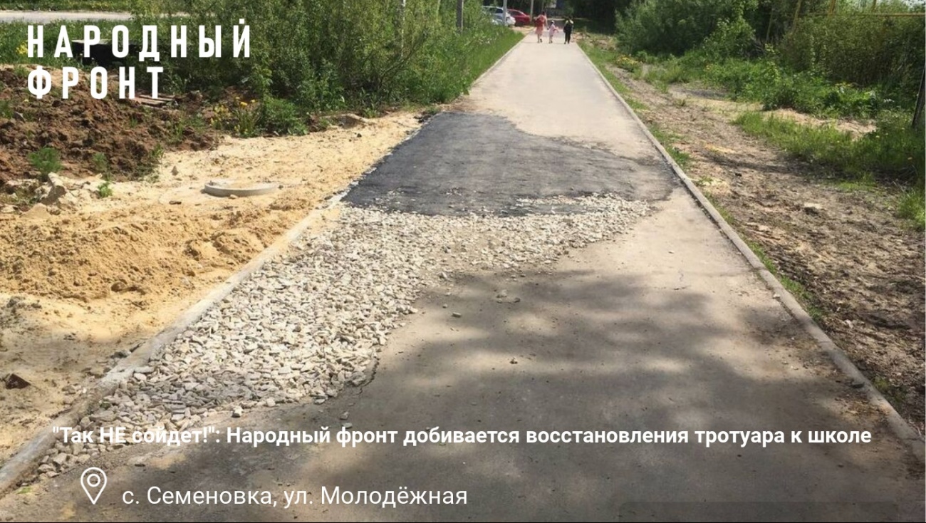 ОНФ в Марий Эл добивается восстановления тротуара в Семёновке