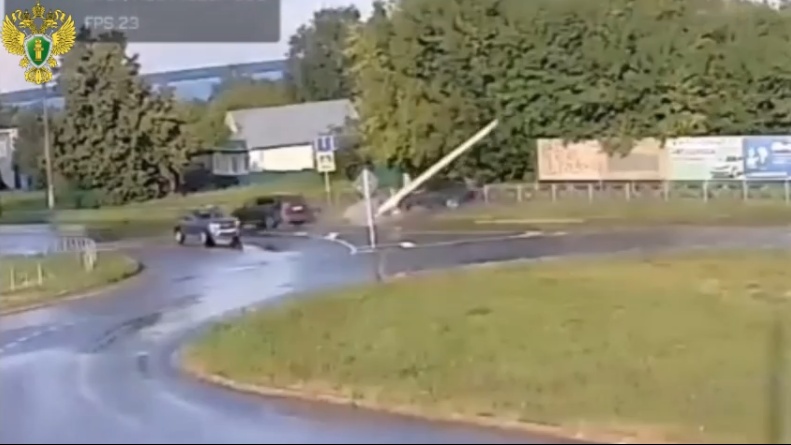 В Козьмодемьянске в ДТП на кольцевой развязке повредили опору уличного освещения.