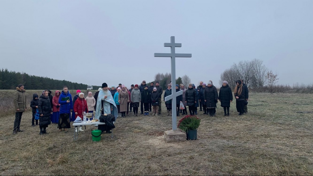Чин освящения совершил настоятель храма Рождества Христова села Арино протоиерей Николай Чузаев. Он отслужил водосвятный молебен и окропил святой водой крест и всех собравшихся.